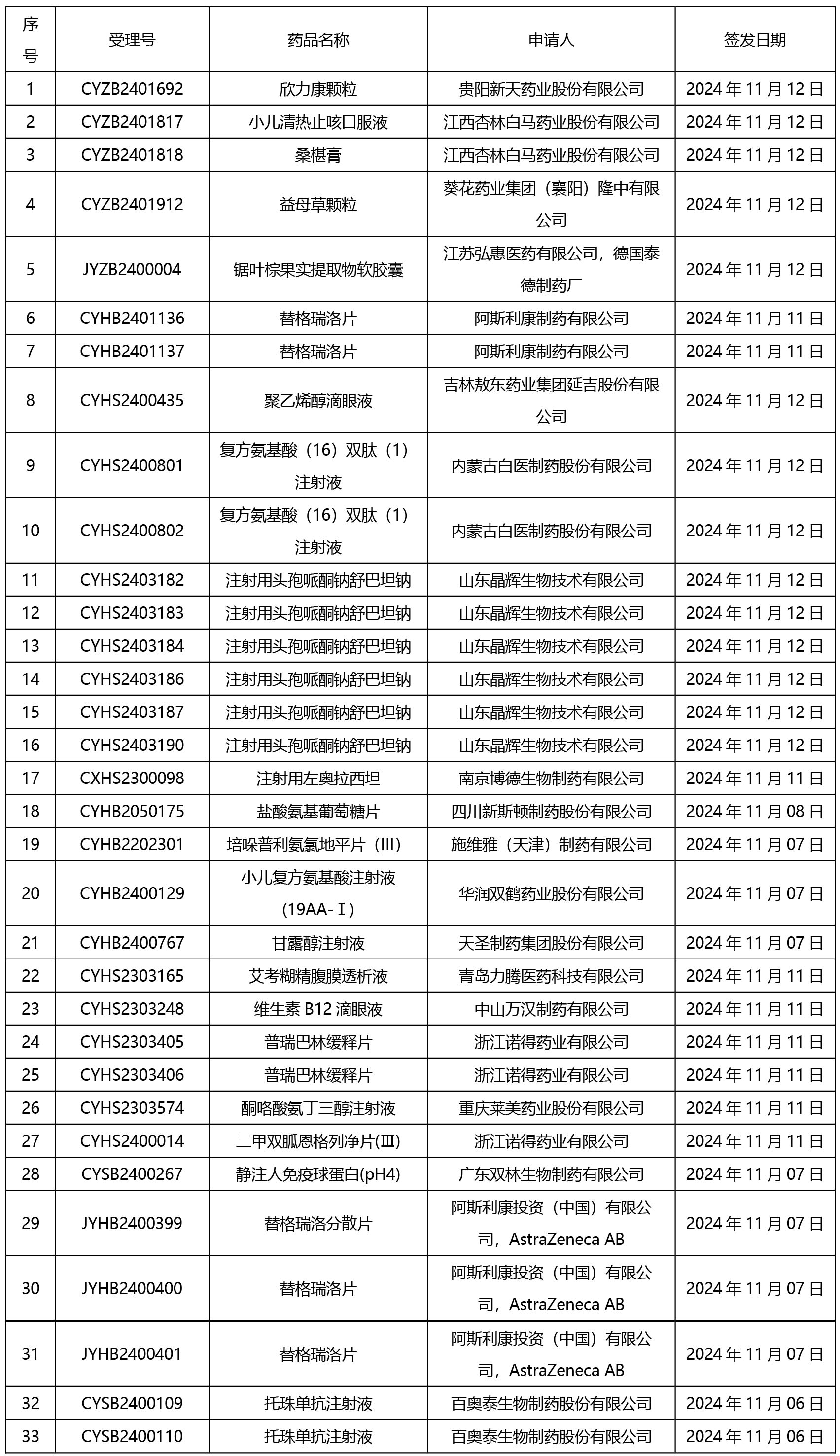 本周(截止到11月15日14:00)發(fā)布33個藥品通知件。