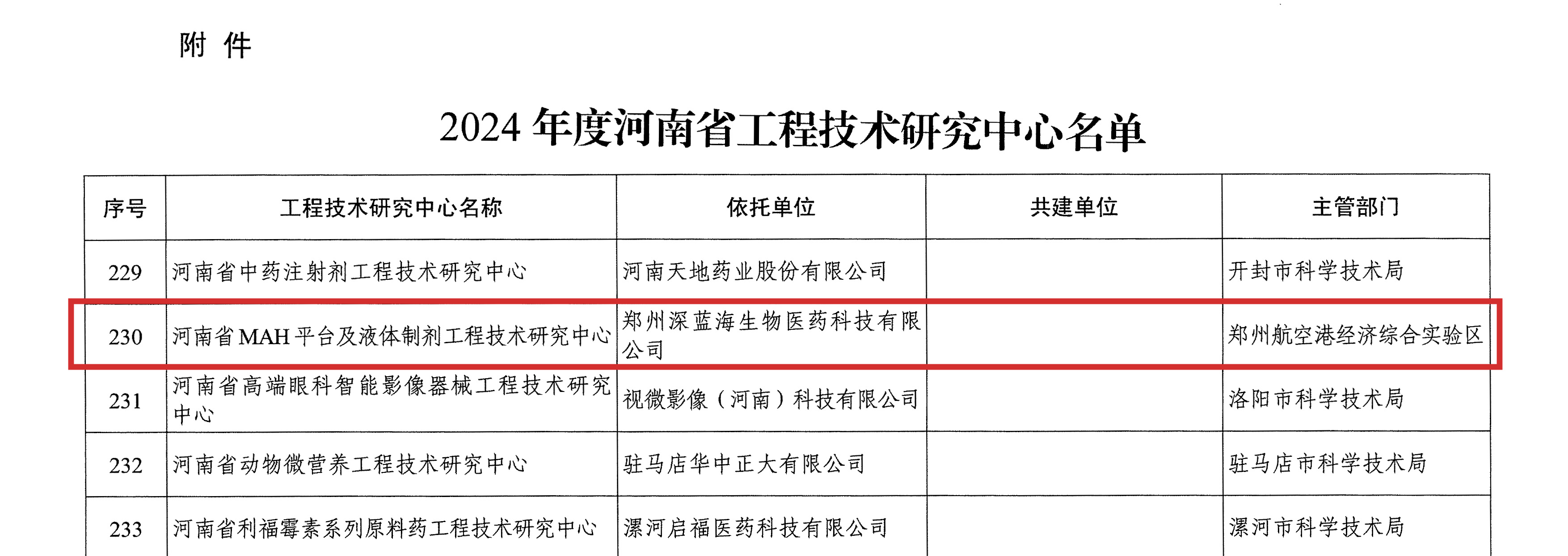 喜報 | 新領(lǐng)先·深藍(lán)海(鄭州)獲批河南省MAH平臺及液體制劑工程技術(shù)研究中心