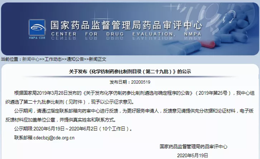 5 月 19 日,CDE 發(fā)布化學(xué)仿制藥參比制劑目錄第 29 批(征求意見稿),第29 批包括 147 個(gè)藥品,其中還有 4 個(gè)品規(guī)未通過審議。
