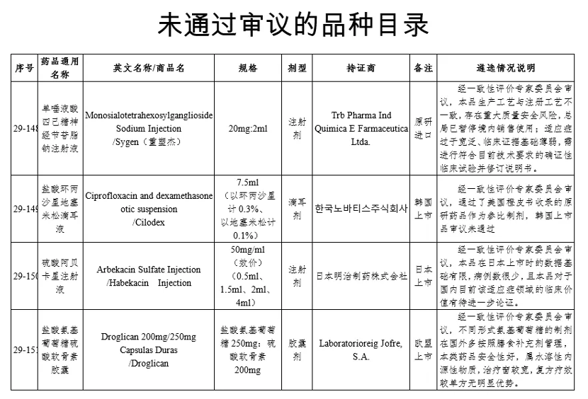 4 個(gè)未通過審議的品規(guī)分別為: