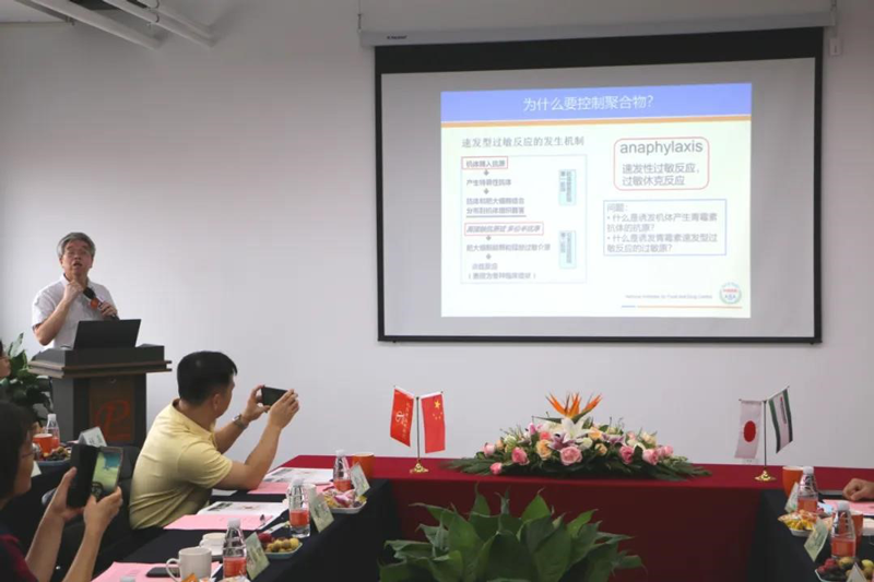 啟動(dòng)儀式上,課題組專家胡昌勤老師作《抗生素聚合物研發(fā)現(xiàn)狀及展望》主題演講,胡老師首先向大家介紹了抗生素近100年的發(fā)展研究歷史,深入解讀了頭孢類抗生素藥物引起過敏反應(yīng)的機(jī)理及頭孢菌素聚合反應(yīng)特性與聚合物結(jié)構(gòu),并對(duì)β-內(nèi)酰胺類抗生素聚合物雜質(zhì)控制策略的形成和發(fā)展做了詳細(xì)分析,干貨十足,在場(chǎng)嘉賓競(jìng)相拍照留存。