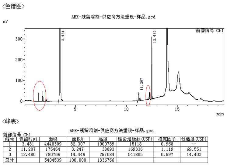 我公司在檢測(cè)某鹽酸鹽類原料藥殘留溶劑時(shí),按質(zhì)量標(biāo)準(zhǔn)采用頂空進(jìn)樣法測(cè)定(稀釋劑為二甲基亞砜),記錄的氣相色譜圖(圖1)中出現(xiàn)較大未知雜質(zhì)峰(非合成過(guò)程中引入溶劑種類)。