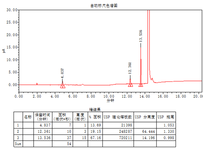 圖1 鹽酸鹽原料藥1號(hào)供試品GC色譜圖