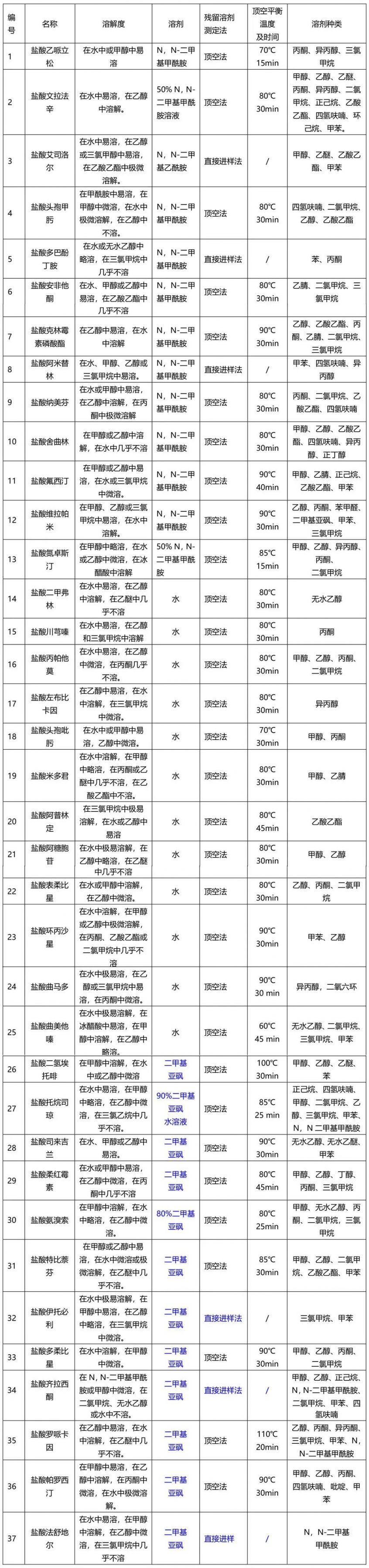 二甲亞砜易分解!鹽酸鹽類原料藥殘留溶劑方法探討(附表:鹽酸鹽品種殘留溶劑檢測(cè)信息匯總表)