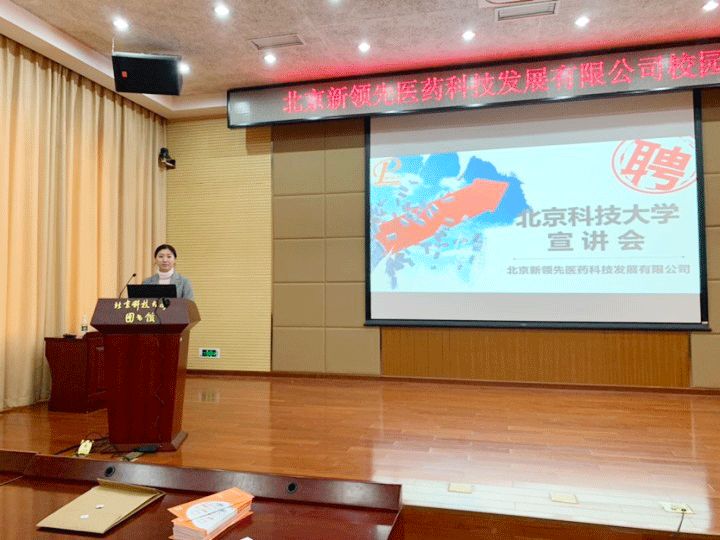 目前,已在北京化工大學和北京科技大學開展了宣講。北京化工大學的宣講會現(xiàn)場有北京新領先醫(yī)藥副總裁張翔先生為此次宣講會致辭,有學姐進行經(jīng)驗分享,公司宣傳片的播放吸引在場同學,同學們積極提問,人力資源部總監(jiān)于雪麗耐心解答,現(xiàn)場氣氛活躍。