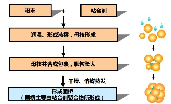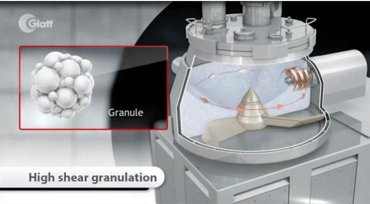高速剪切濕法制粒可分為 預(yù)混階段、噴粘合劑階段和濕顆粒形成階段。 由于濕法制粒機(jī)中有很多工藝參數(shù)如攪拌及剪切速度、粘合劑加入時(shí)間、制粒時(shí)間、粘合劑加入量等都會(huì)對(duì)顆粒性質(zhì)產(chǎn)生影響,同時(shí)這些工藝參數(shù)之間還可能存在協(xié)同作用,共同決定最終的顆粒性質(zhì)。
