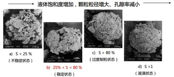 參照《固體口服制劑的研發(fā)-藥學(xué)理論與實(shí)踐》一書,及陳挺老師《流化床微丸包衣工藝和高剪切制粒工藝的關(guān)鍵因素和工藝放大》一文中對(duì)于濕法制粒的理解,濕法制粒核心需對(duì)濕顆粒的含水量和顆粒緊實(shí)程度進(jìn)行優(yōu)化,以獲得合理的濕顆粒液體飽和度,以期獲得合適并穩(wěn)定的粉體學(xué)特征的顆粒,用于壓片、包衣等, 通過(guò)參數(shù)摸索確認(rèn)濕法制粒的關(guān)鍵工藝參數(shù)及工藝設(shè)計(jì)區(qū)間為濕法制粒研究的關(guān)鍵點(diǎn)及難點(diǎn)。