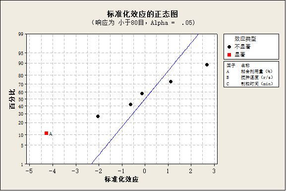 1)粘合劑用量為影響80目以下粉末粒度分布的顯著因子