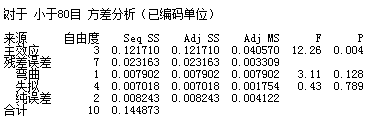 ? 模型建立之后合理的優(yōu)化模型,使得總模型有效,無(wú)明顯彎曲和失擬現(xiàn)象,盡可能提高回歸方程R2,使得預(yù)測(cè)和調(diào)整R-Sq盡可能更為接近,提高模型預(yù)測(cè)的準(zhǔn)確性。