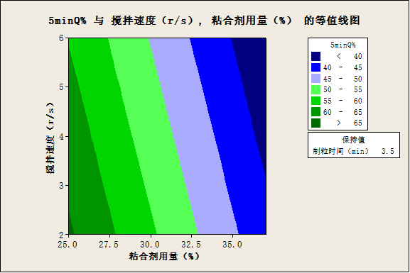圖: 粘合劑和攪拌速度對(duì)5min溶出度的影響趨勢(shì)(制粒時(shí)間3.5min)