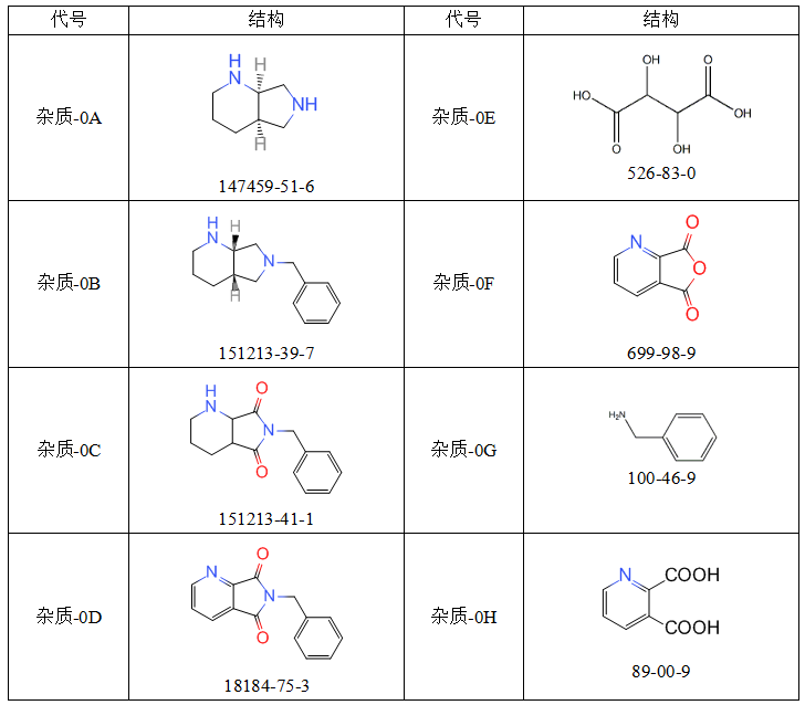 1)有關(guān)物質(zhì)方法:主要檢測雜質(zhì)-1A、雜質(zhì)-1B、雜質(zhì)-1C、雜質(zhì)-1D、雜質(zhì)-1F、雜質(zhì)-1H、雜質(zhì)-1L與未知雜質(zhì)。