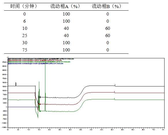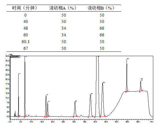 柱溫40℃;檢測波長220nm;流速1ml/min;進樣量20μl;供試品濃度:1mg/min