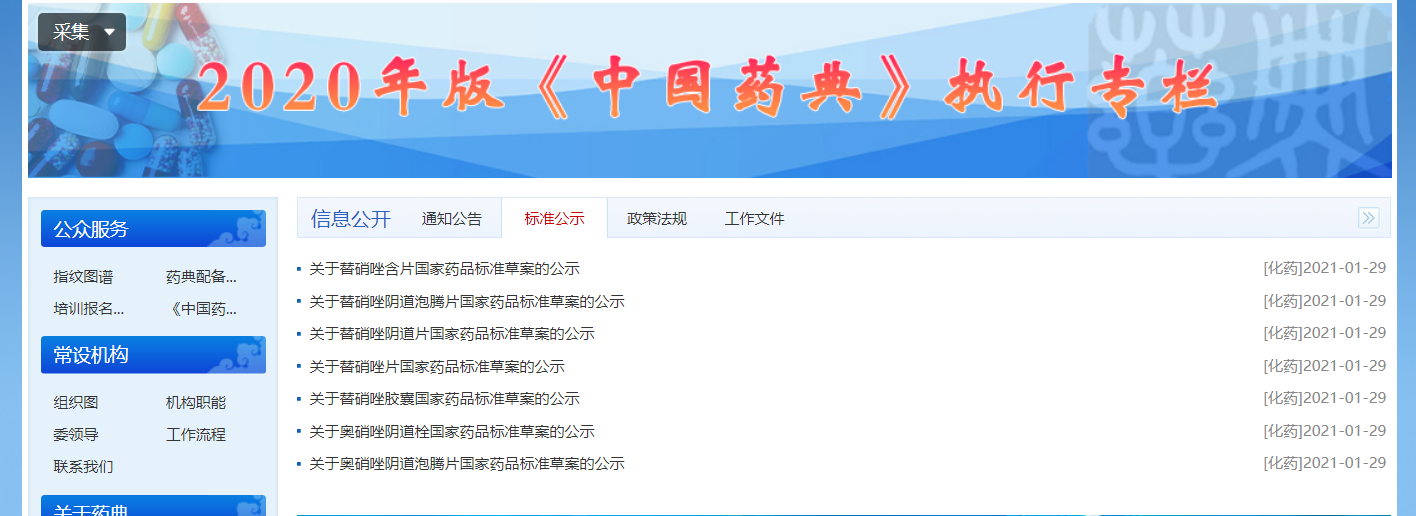 本周替硝唑含片、替硝唑陰道泡騰片、替硝唑陰道片、替硝唑膠囊、左奧硝唑氯化鈉注射液等國家藥品標準公示如下: