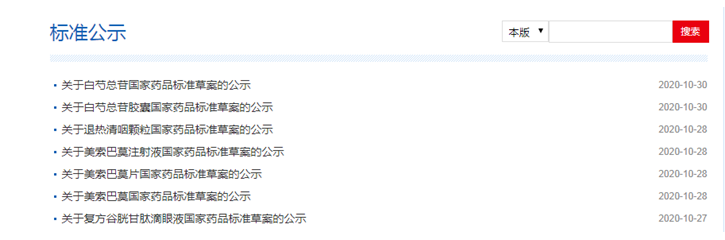 白芍總苷(膠囊)、退熱清咽顆粒、美索巴莫注射液(片)、復(fù)方谷胱甘肽滴眼液國家藥品標準草案公示。