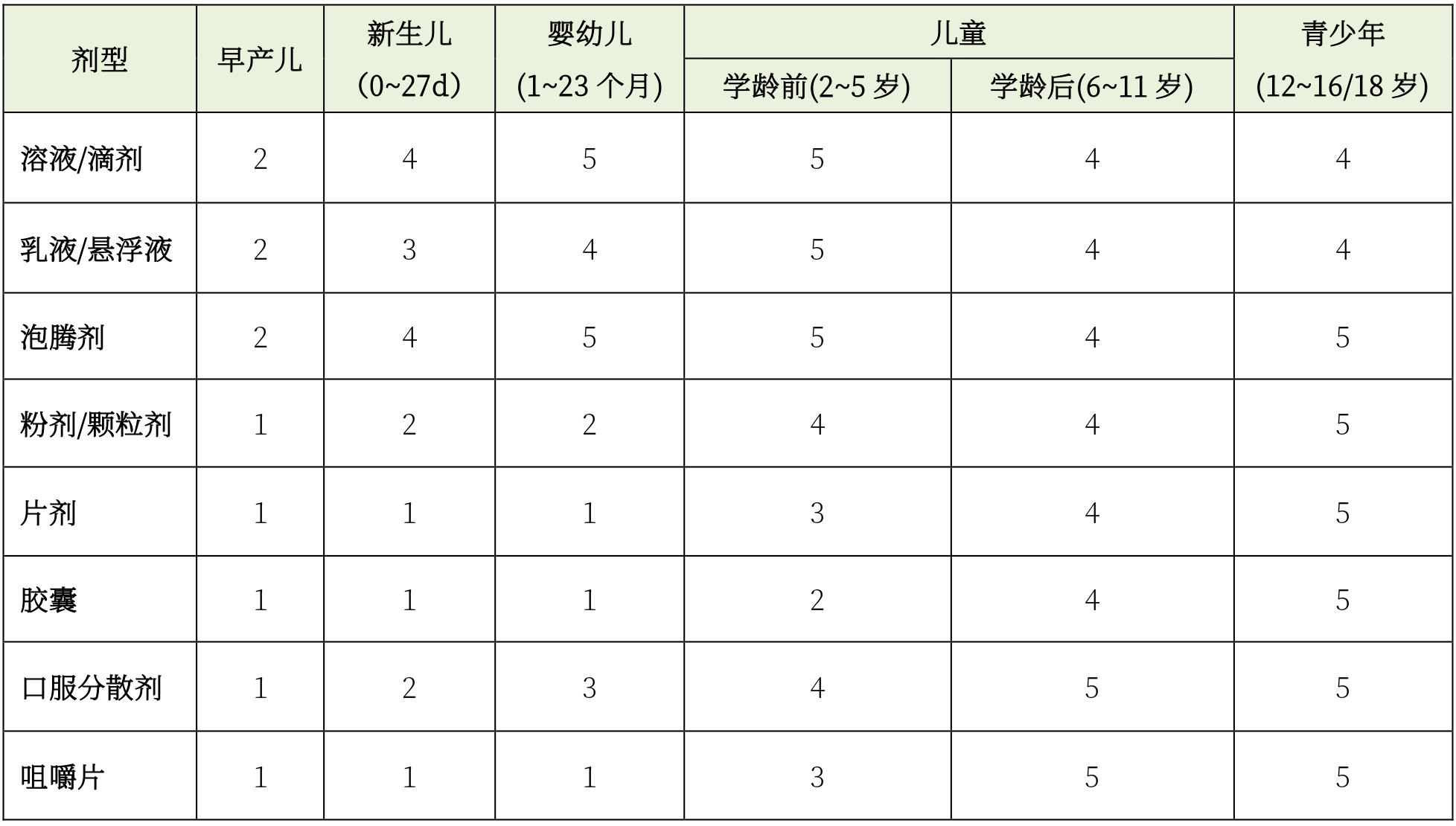 歐盟針對不同年齡段兒童進(jìn)行了劑型(口服給藥途徑)推薦: