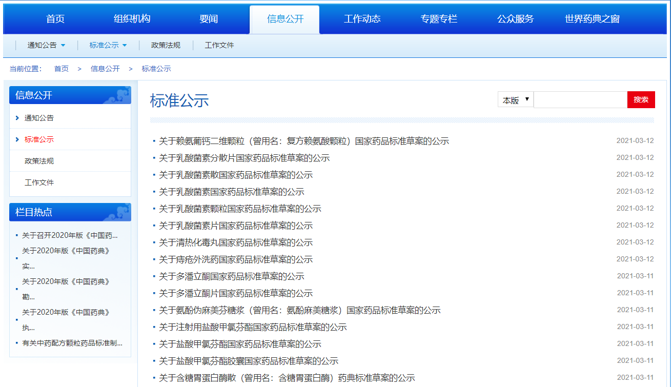 本周復(fù)方魚腥草膠囊、穿龍薯蕷皂苷(曾用名:薯蕷皂苷)、薯蕷皂苷片、茶色素膠囊、注射用三氧化二砷、賴氨葡鈣二維顆粒(曾用名:復(fù)方賴氨酸顆粒)、乳酸菌素分散片、乳酸菌素散、乳酸菌素、乳酸菌素顆粒、乳酸菌素片、清熱化毒丸、痔瘡?fù)庀此?、多潘立酮、多潘立酮片、氨酚偽麻美芬糖漿(曾用名:氨酚麻美糖漿)、注射用鹽酸甲氯芬酯、鹽酸甲氯芬酯、鹽酸甲氯芬酯膠囊國家藥品標(biāo)準(zhǔn)草案公示;氨丁三醇藥用輔料標(biāo)準(zhǔn)草案公示、胃蛋白酶、含糖胃蛋白酶散(曾用名:含糖胃蛋白酶)藥典標(biāo)準(zhǔn)草案公示。