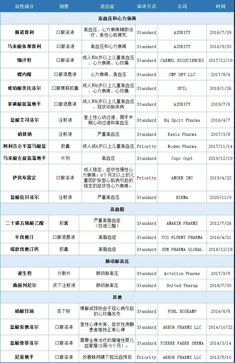 表3 2010-2020年美國FDA批準的心血管領(lǐng)域的改良型新藥品種(新劑型/新制劑)
