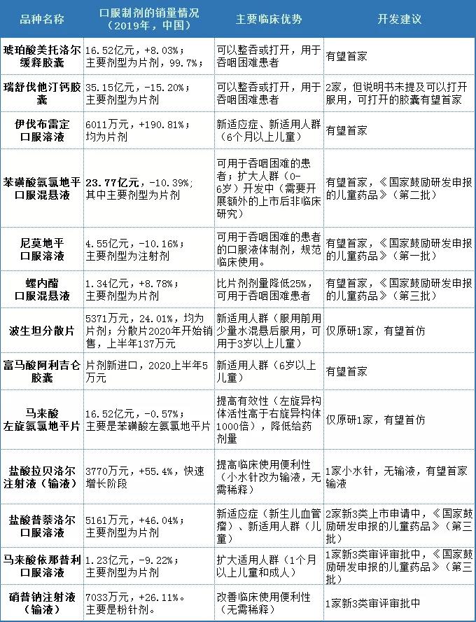 口服制劑:大多數(shù)新劑型、新制劑的品種以關(guān)注特殊人群的用藥需求為主(包括吞咽困難人群和兒童用藥);這其中,不乏對大品種的改良,例如氨氯地平、瑞舒伐他汀鈣等。