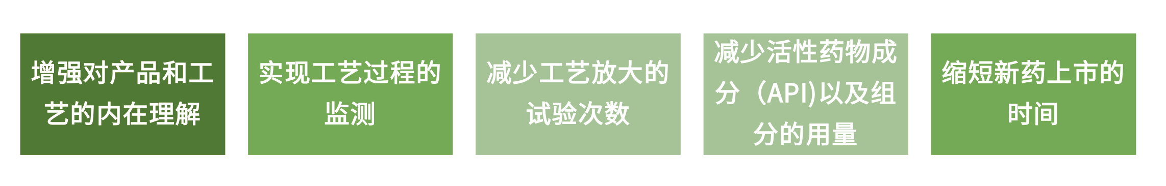 因?yàn)檫@些目標(biāo)都是和生產(chǎn)環(huán)節(jié)緊密相關(guān)的,而基于“質(zhì)量源于設(shè)計(jì)”原則,將PAT運(yùn)用在藥物開發(fā)過程可以提升對工藝的理解和減少工藝開發(fā)與放大的時間,從而實(shí)現(xiàn)如下研發(fā)目標(biāo):