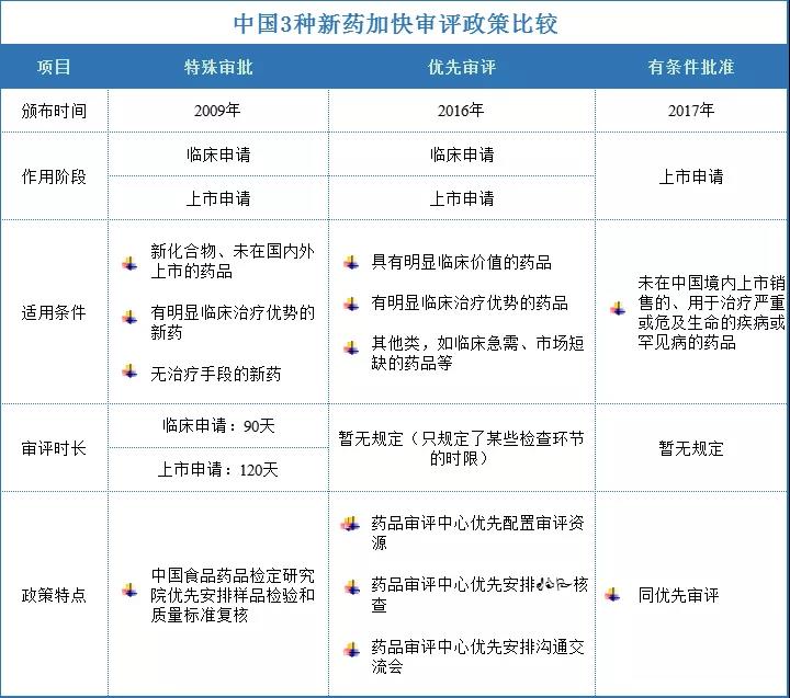 中國新藥上市加快審評審批政策包括4種類型,分別是特別審批、特殊審批、優(yōu)先審評、有條件批準(zhǔn)。由于“特別審批”涉及重大突發(fā)衛(wèi)生公共事件,滿足條件的品種很少,因此,通常情況下中國新藥上市加快審評類型可以歸納為3種,分別是特殊審批、優(yōu)先審評、有條件批準(zhǔn)。