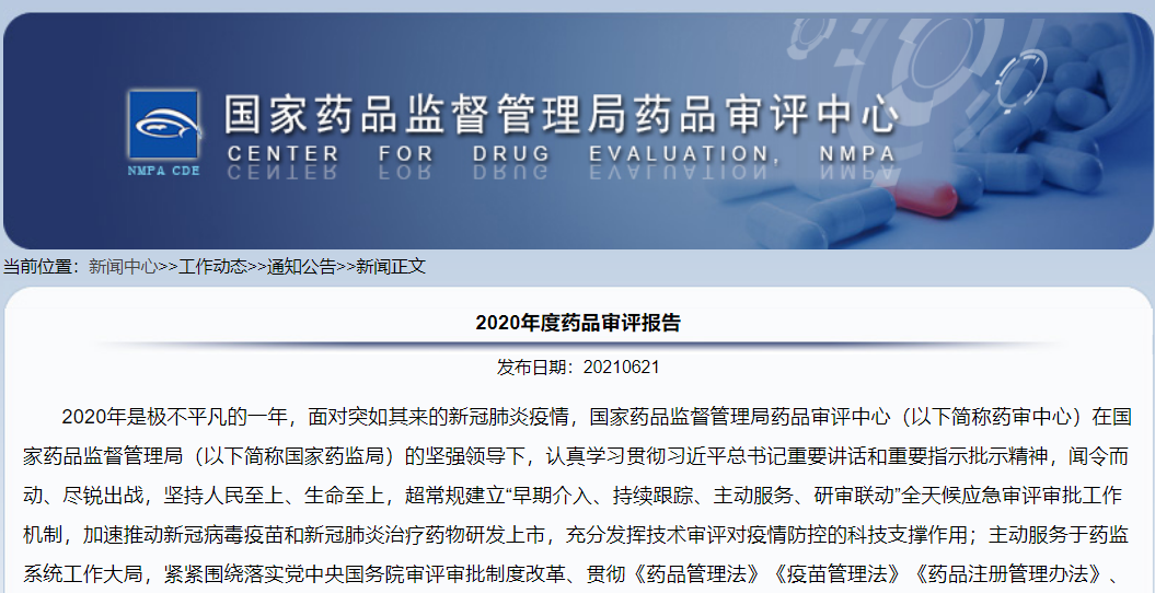 2020年度藥品審評報(bào)告發(fā)布!全年審評通過創(chuàng)新藥20個(gè)