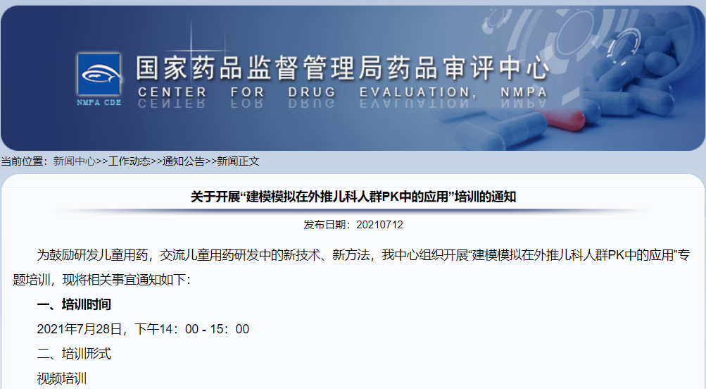 關(guān)于開展“建模模擬在外推兒科人群PK中的應(yīng)用”培訓的通知