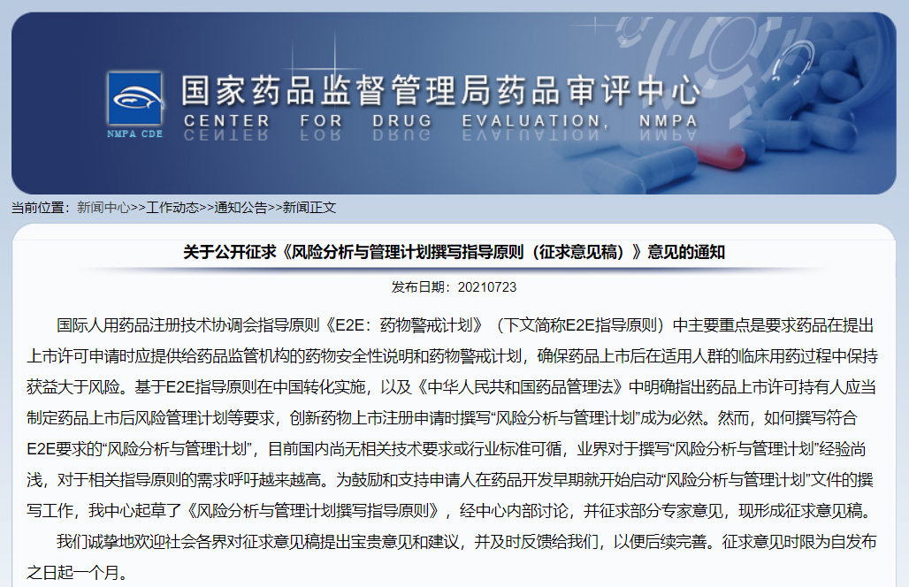 關(guān)于公開(kāi)征求《風(fēng)險(xiǎn)分析與管理計(jì)劃撰寫(xiě)指導(dǎo)原則(征求意見(jiàn)稿)》意見(jiàn)的通知