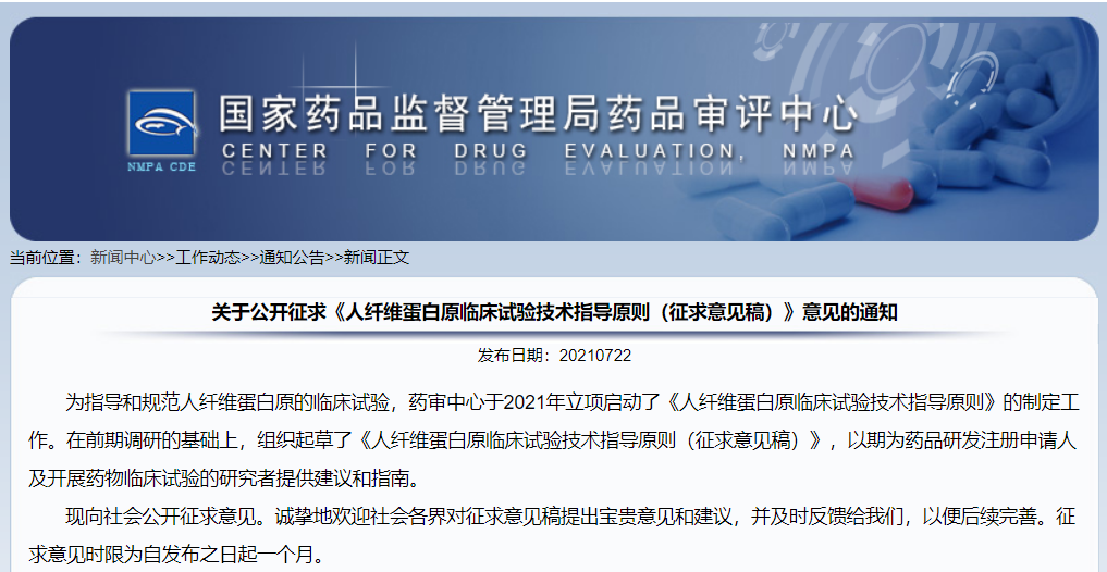 關(guān)于公開(kāi)征求《人纖維蛋白原臨床試驗(yàn)技術(shù)指導(dǎo)原則(征求意見(jiàn)稿)》意見(jiàn)的通知
