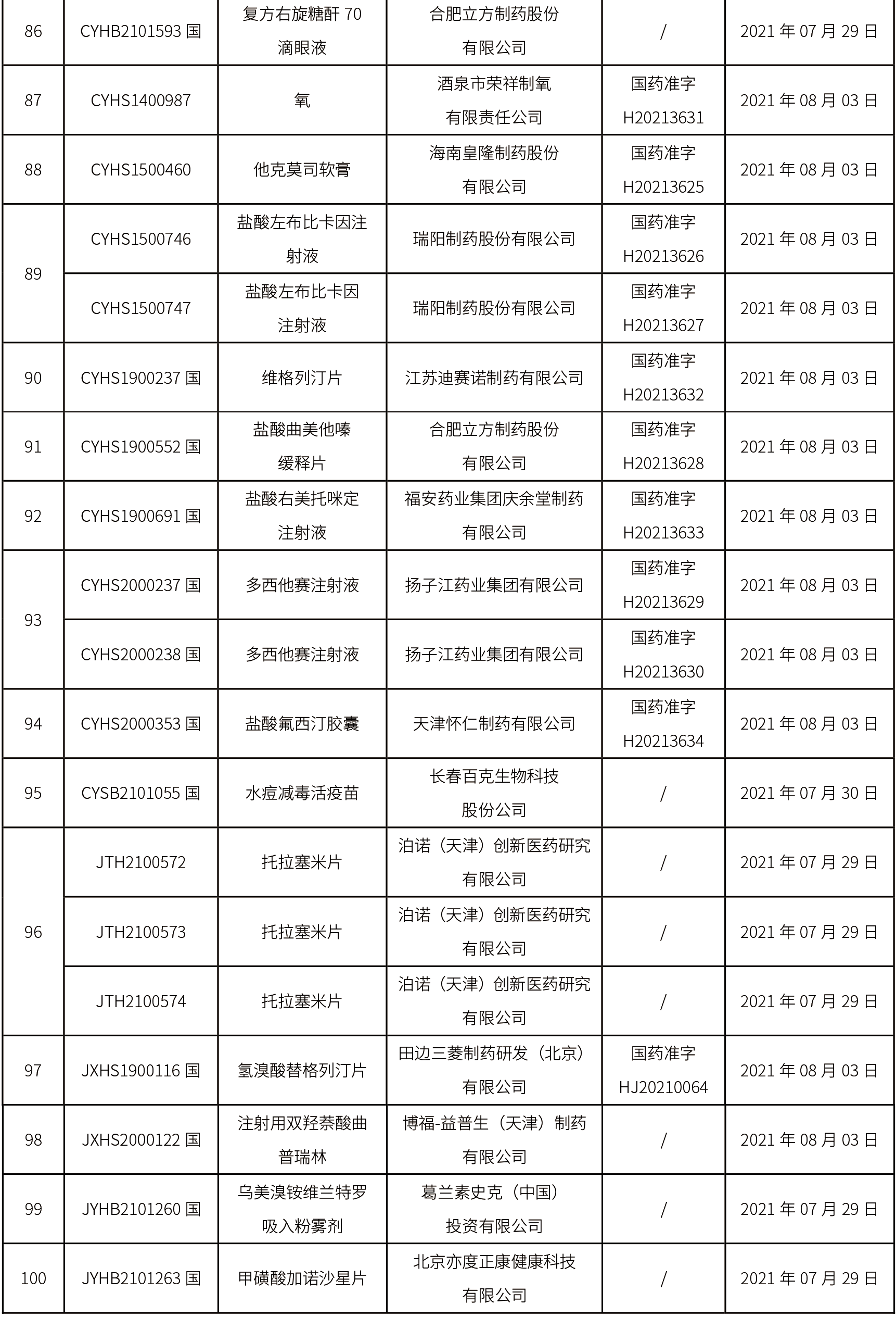 2021年8月3日中藥品種保護受理公示