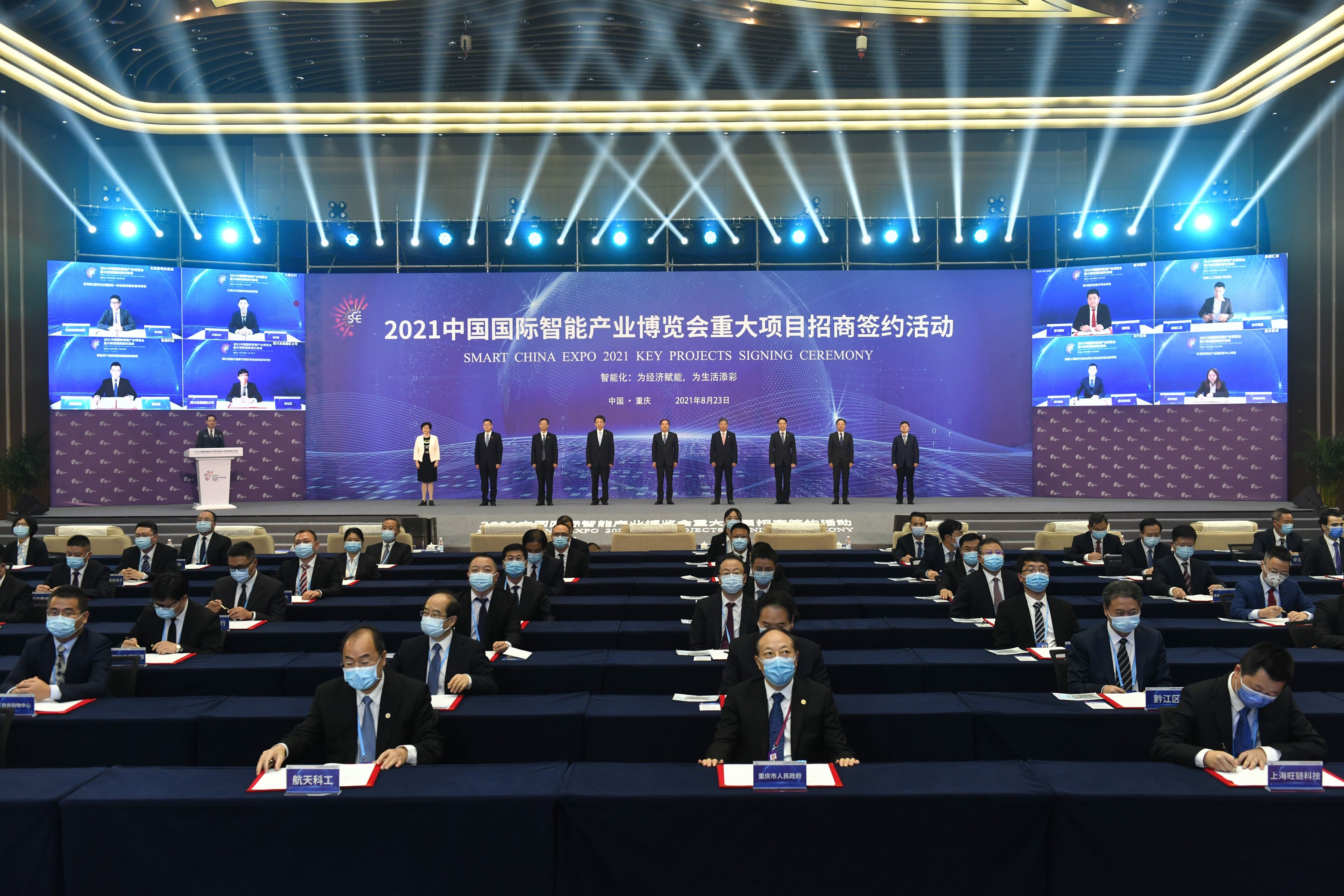 ▲北京新領(lǐng)先陶新華董事長(zhǎng)通過(guò)線上方式在智博會(huì)永川專場(chǎng)簽約儀式上發(fā)言