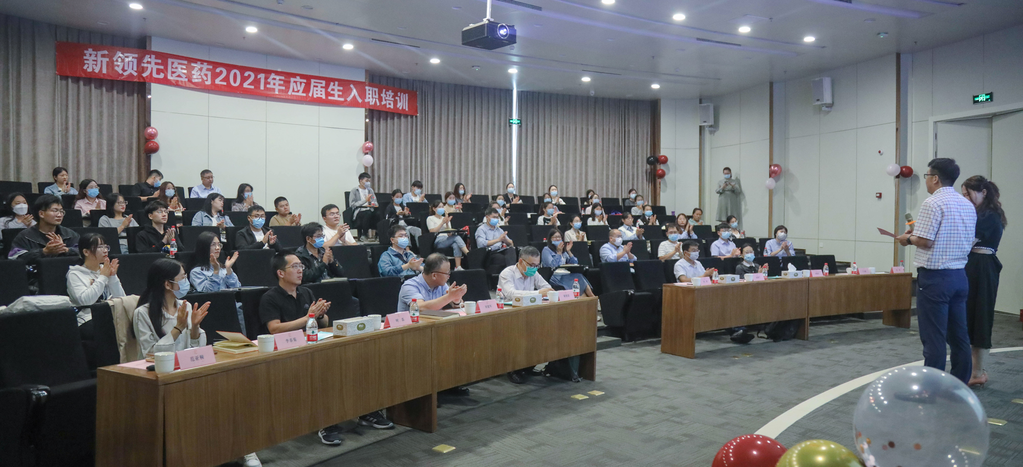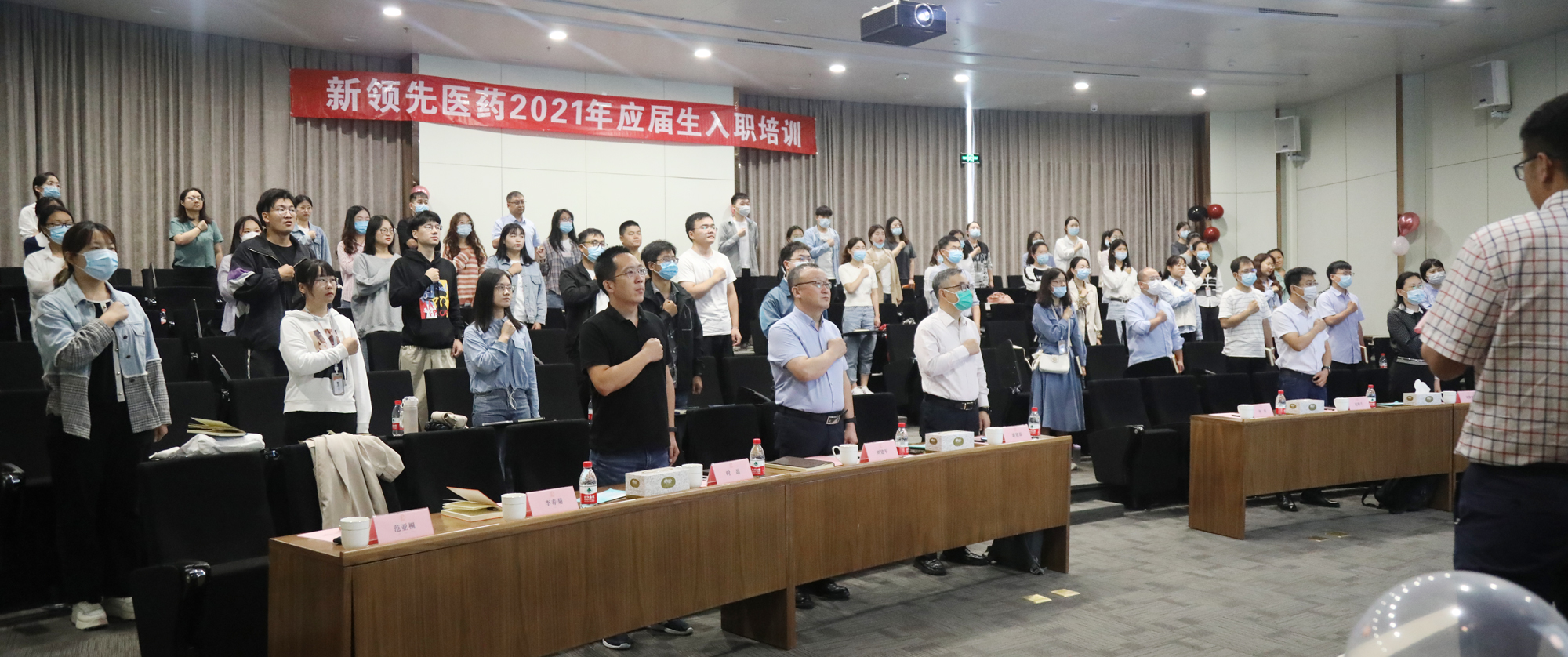 新領(lǐng)先醫(yī)藥2021年第二批應(yīng)屆生集中入職培訓(xùn)在鄭州生物醫(yī)藥園成功舉辦。新領(lǐng)先醫(yī)藥副總裁兼首席技術(shù)官康建磊先生、新領(lǐng)先研究院鄭州分院負(fù)責(zé)人趙德千先生、新領(lǐng)先研究院鄭州分院負(fù)責(zé)人兼QA經(jīng)理劉建軍先生、新領(lǐng)先研究院鄭州分院負(fù)責(zé)人兼行政總監(jiān)賈琪女士等眾多高管及鄭州臨空生物醫(yī)藥園董事長(zhǎng)鐘南博士出席了現(xiàn)場(chǎng)儀式,新領(lǐng)先醫(yī)藥董事長(zhǎng)陶新華先生、總裁高世靜女士、副總裁董穎女士通過(guò)云視頻與新員工進(jìn)行互動(dòng)和交流。