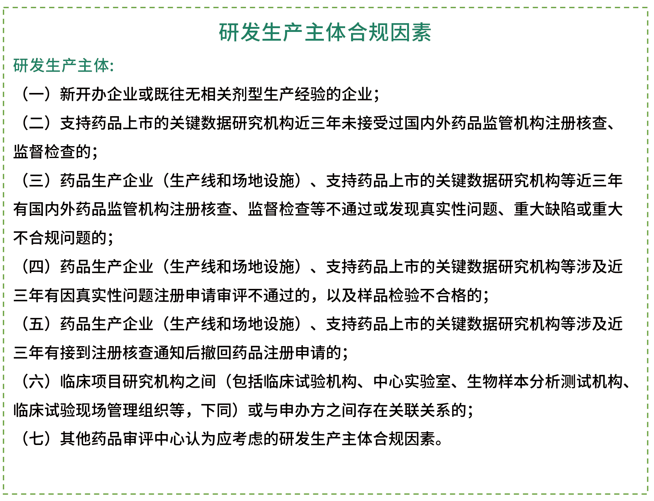 上市申請審評中注冊檢驗(yàn):藥品審評中心基于風(fēng)險(xiǎn)啟動的質(zhì)量標(biāo)準(zhǔn)部分項(xiàng)目復(fù)核和現(xiàn)場核查的抽樣檢驗(yàn),以及因申報(bào)資料真實(shí)性存疑或投訴舉報(bào)等基于審評需要啟動的有因抽樣檢驗(yàn)。