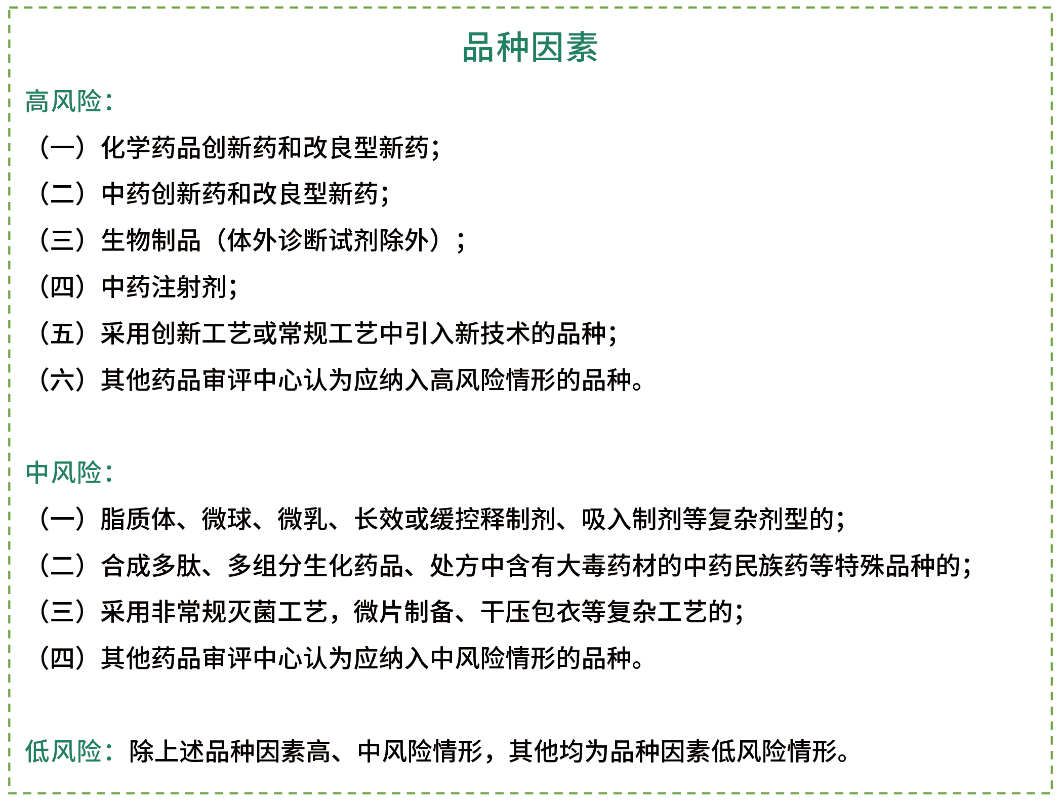 原則上以品種因素和研發(fā)生產(chǎn)主體合規(guī)因素中風(fēng)險(xiǎn)情形較高的確定注冊申請風(fēng)險(xiǎn)等級,特殊情況的除外。對于補(bǔ)充申請,生物制品和中藥注射劑不納入品種因素高風(fēng)險(xiǎn)情形。