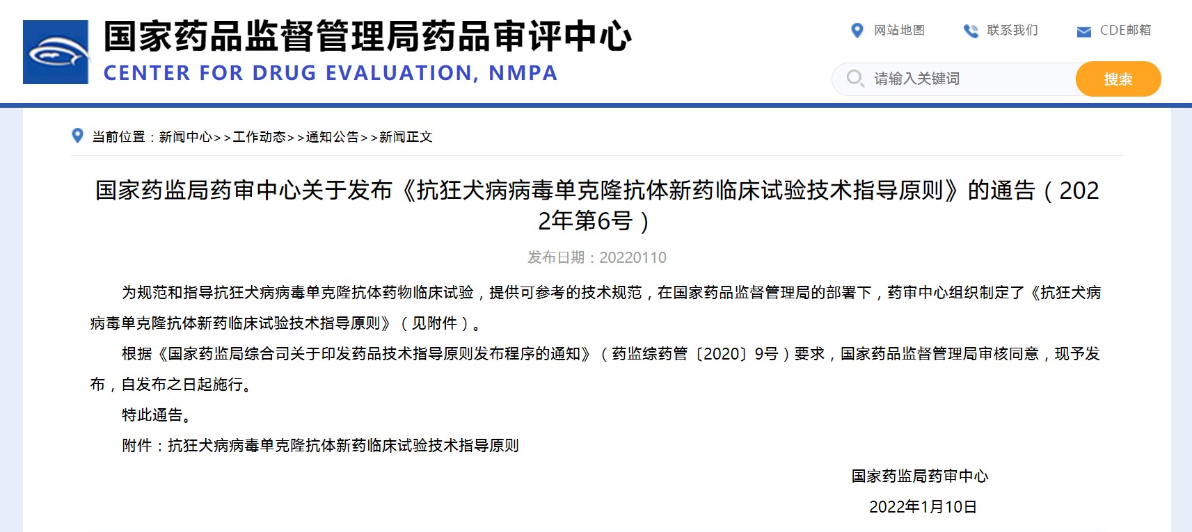 國家藥監(jiān)局藥審中心關(guān)于發(fā)布《抗狂犬病病毒單克隆抗體新藥臨床試驗技術(shù)指導(dǎo)原則》的通告(2022年第6號)
