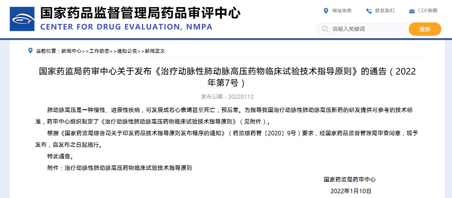 國家藥監(jiān)局藥審中心關(guān)于發(fā)布《治療動脈性肺動脈高壓藥物臨床試驗技術(shù)指導(dǎo)原則》的通告(2022年第7號)