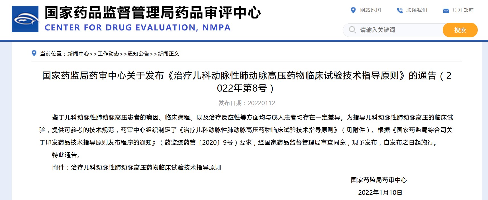 國家藥監(jiān)局藥審中心關(guān)于發(fā)布《治療兒科動脈性肺動脈高壓藥物臨床試驗技術(shù)指導(dǎo)原則》的通告(2022年第8號)