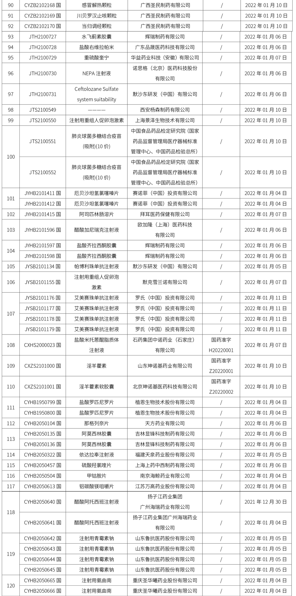 1. 本周共計164個品種獲批取得藥品批準(zhǔn)證明文件,其中一致性評價品種22個,包括注射劑品種11個。