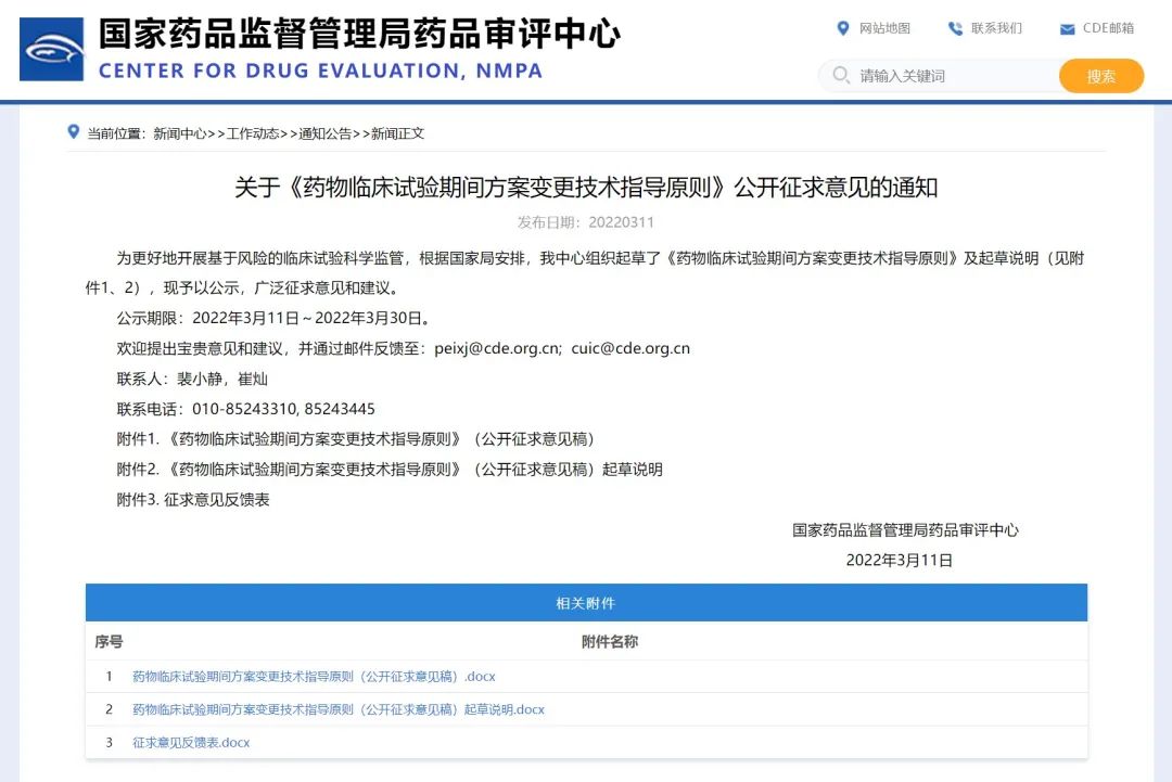 關(guān)于《藥物臨床試驗期間方案變更技術(shù)指導原則》公開征求意見的通知