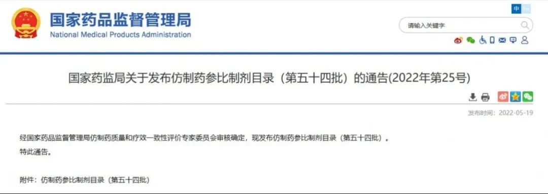 國家藥監(jiān)局關(guān)于發(fā)布仿制藥參比制劑目錄(第五十四批)的通告(2022年第25號)