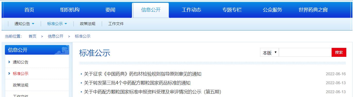 本周藥典委發(fā)布1個(gè)關(guān)于中藥配方顆粒國家標(biāo)準(zhǔn)申報(bào)資料受理及審評(píng)情況的公示(第五期),1個(gè)第三批4個(gè)中藥配方顆粒國家藥品標(biāo)準(zhǔn)的通知,1個(gè)征求《中國藥典》藥包材檢驗(yàn)規(guī)則指導(dǎo)原則意見的通知。