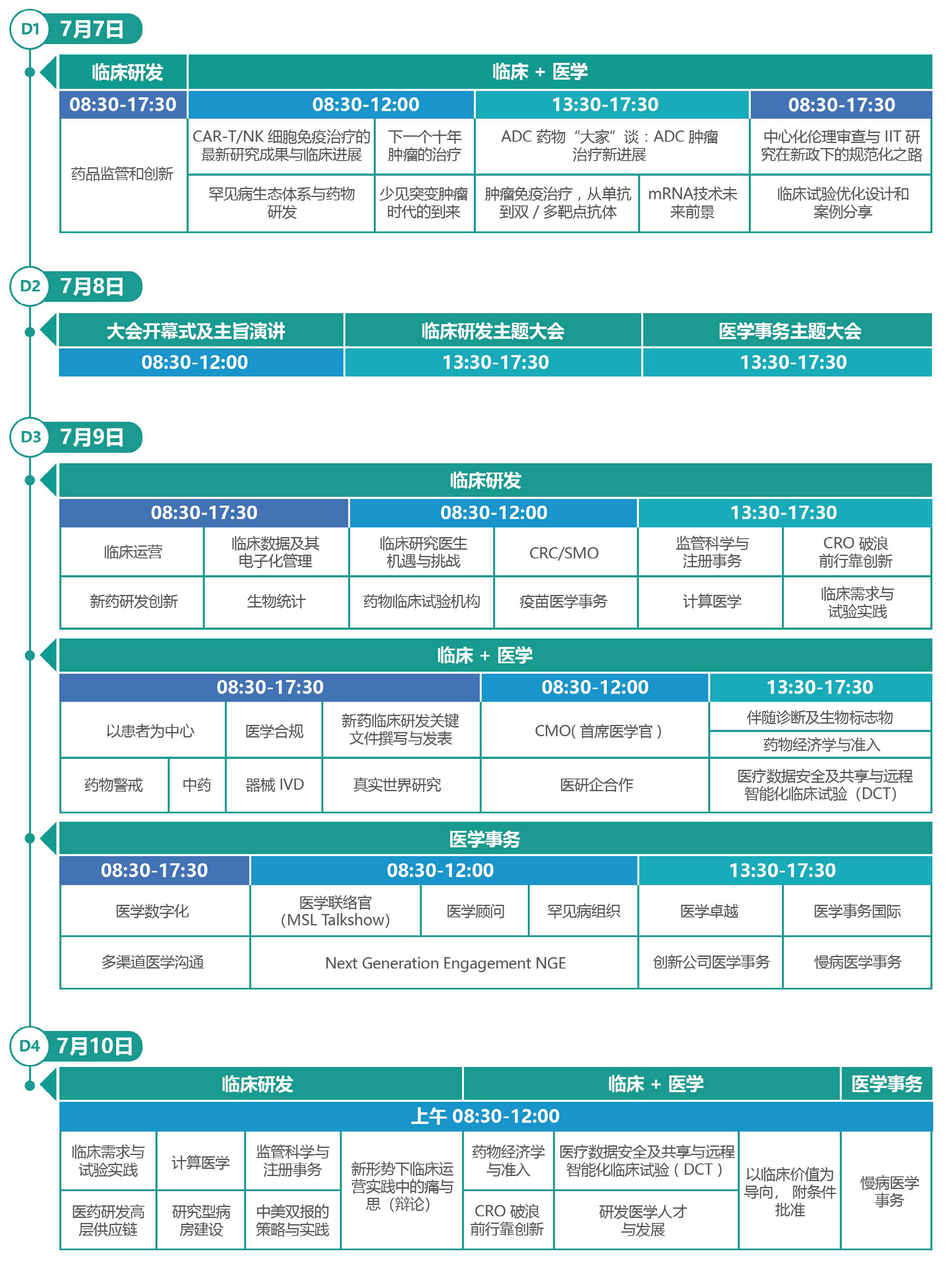本次會議圍繞藥品監(jiān)管與創(chuàng)新、治療領(lǐng)域醫(yī)學(xué)熱點(diǎn)、臨床研發(fā)、醫(yī)學(xué)事務(wù)等模塊進(jìn)行交流分享,同時設(shè)有12大專題論壇,演講專家達(dá)1000余人,緊跟行業(yè)發(fā)展趨勢,著力于解決參會同仁痛點(diǎn)及難點(diǎn)問題。