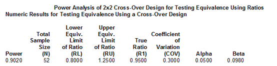 總結:當個體內變異系數(shù)為 15% 時,軟件計算所得的樣本需求量為 15 例,而當體內變異系數(shù)為 30% 時,軟件計算所得的樣本需求量為 52 例,由此可知:如果一個品種個體內變異越高,滿足生物等效性標準所需的受試者樣本量就越大。