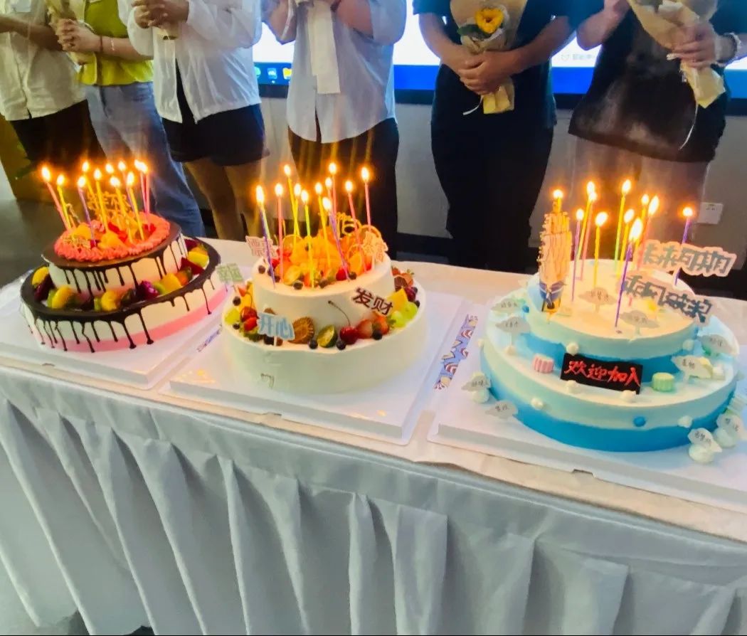 培訓(xùn)期間,我們?yōu)?月份過生日的應(yīng)屆生小伙伴舉辦生日會,新領(lǐng)先副總裁顏耀東先生為他們送上祝福和鮮花......