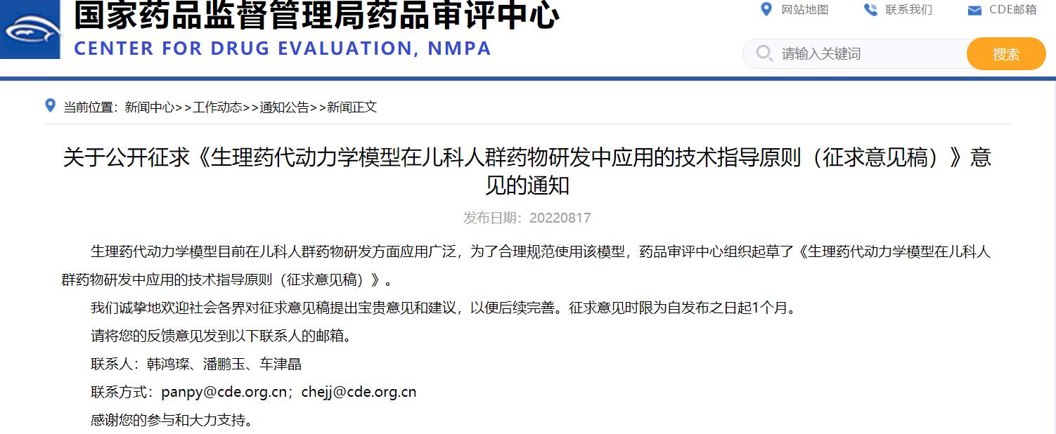 關(guān)于公開征求《生理藥代動力學模型在兒科人群藥物研發(fā)中應(yīng)用的技術(shù)指導(dǎo)原則(征求意見稿)》意見的通知
