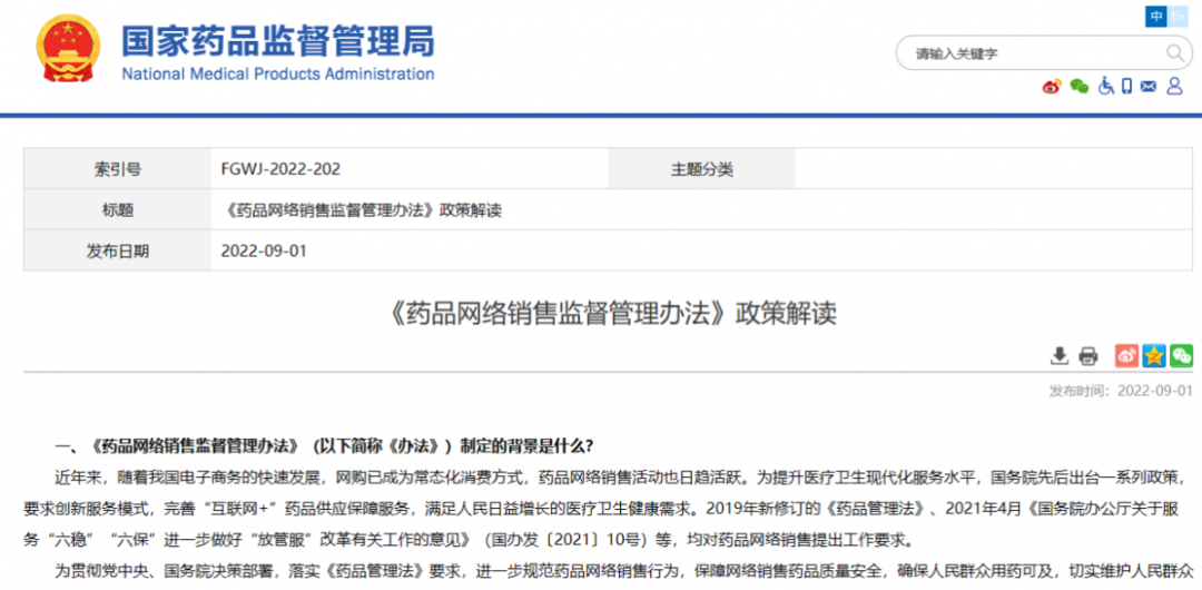 《藥品網(wǎng)絡(luò)銷售監(jiān)督管理辦法》及政策解讀
