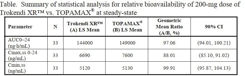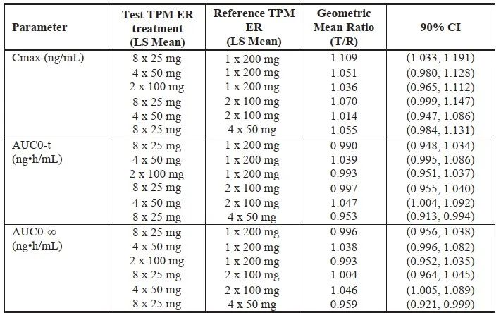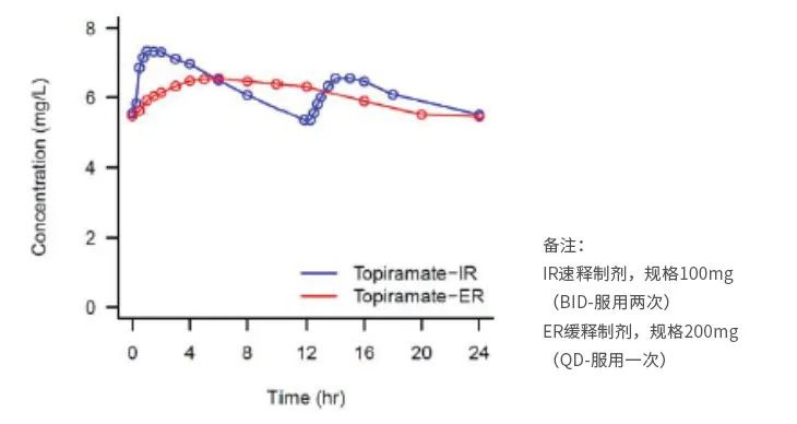 ·托吡酯緩釋膠囊將每個時間段的藥動學(xué)參數(shù)與片劑進(jìn)行比較,證明兩種制劑的差異較小。實現(xiàn)豁免驗證性臨床。