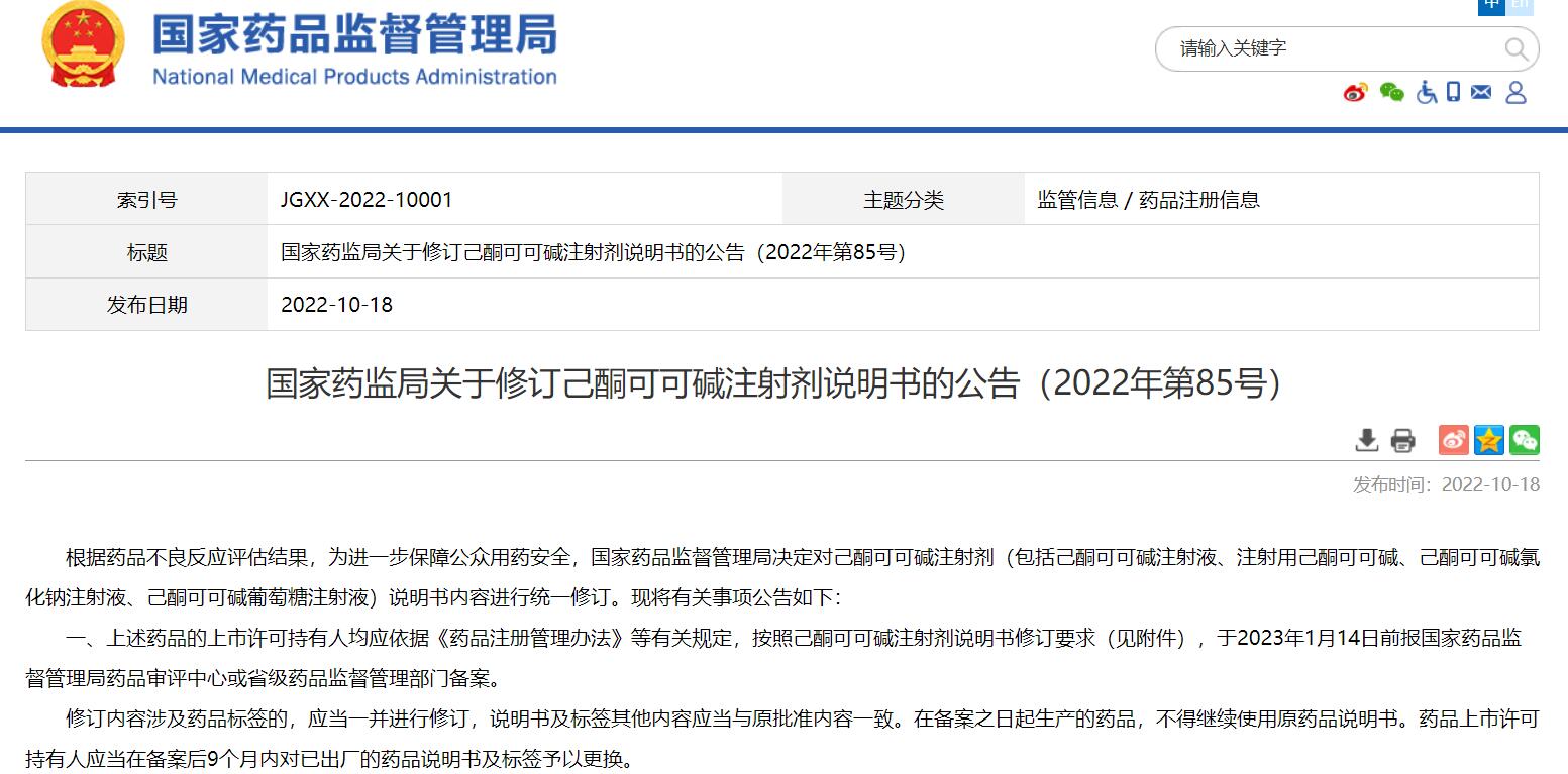 國家藥監(jiān)局關(guān)于修訂己酮可可堿注射劑說明書的公告(2022年第85號)