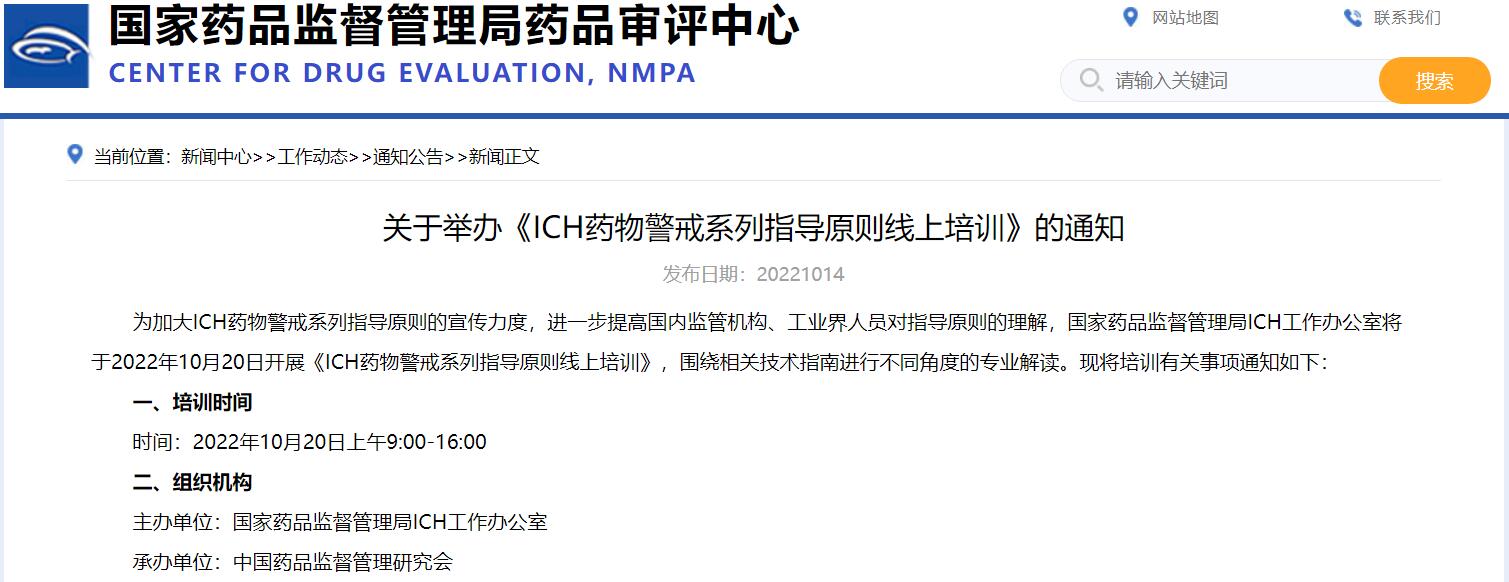 關(guān)于舉辦《ICH藥物警戒系列指導(dǎo)原則線上培訓(xùn)》的通知