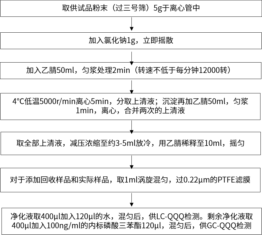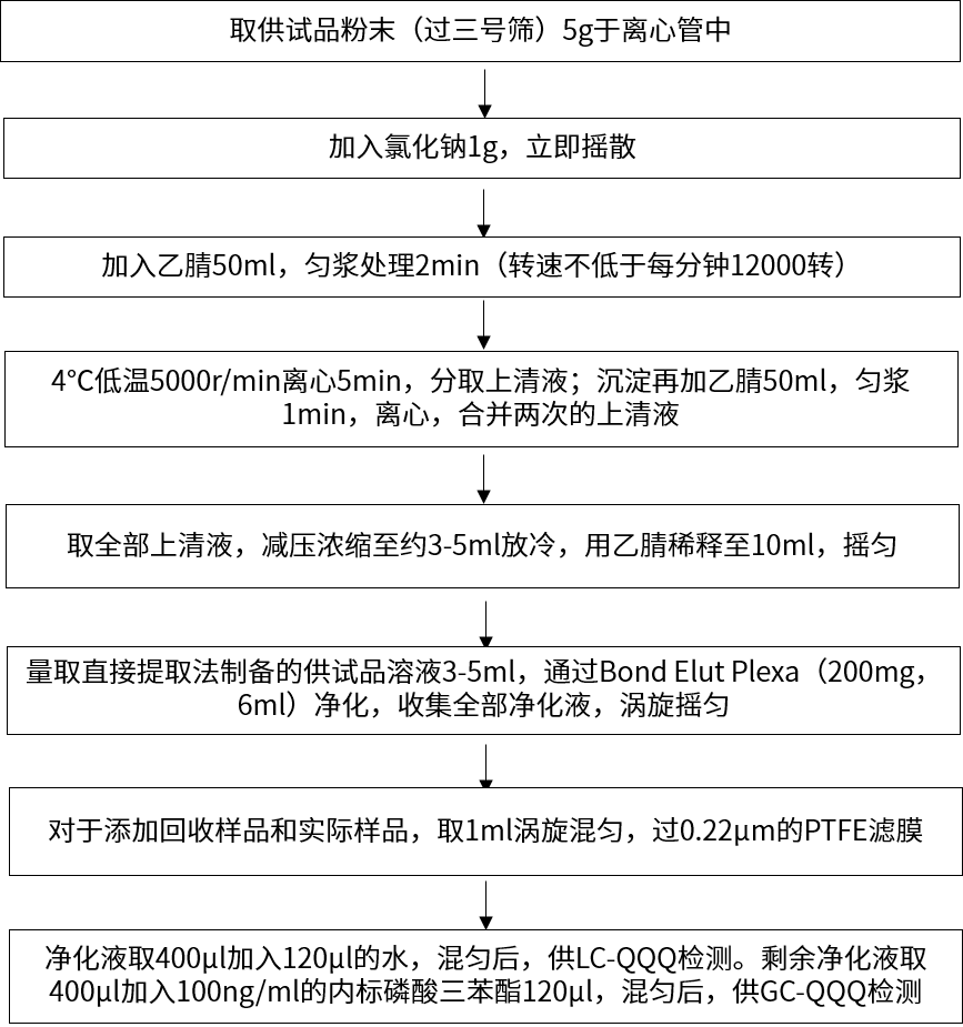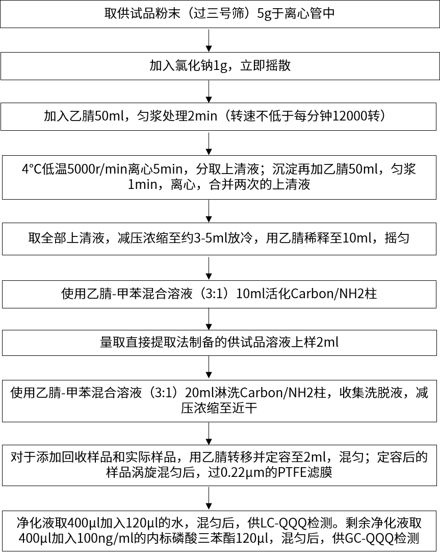 案例一:新領(lǐng)先醫(yī)藥分析測試中心針對菊花、人參、麥冬、薏米仁、陳皮、金銀花、三七、干姜、黃芪、沙姜等中藥進(jìn)行了藥典中直接提取法、固相萃取法之方法二、固相萃取法之方法三和QuEChERS法的前處理。處理流程圖分別如下: