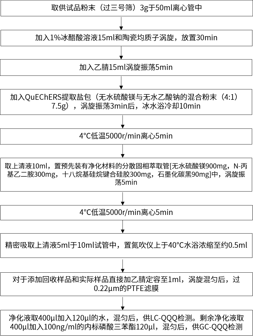 目前,中藥材農(nóng)殘分析主要包括樣品的前處理檢測兩部分。